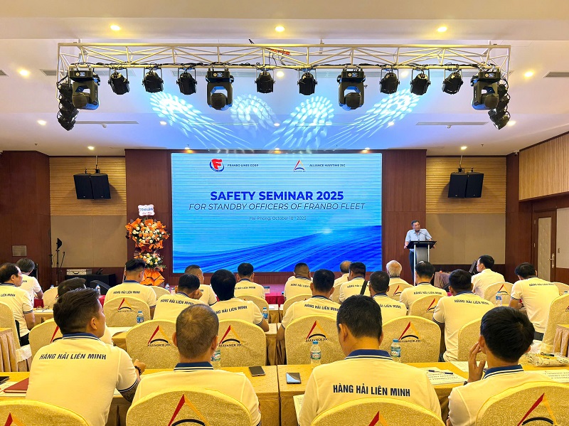 Ngày 18/10/2025, tại hội trường tòa nhà 802, Công ty Cổ phần Hàng hải Liên Minh, công ty đã long trọng tổ chức Hội thảo an toàn hàng hải dành cho toàn bộ các Thuyền trưởng, Máy trưởng cùng các Sỹ quan boong và máy thuộc khối tàu Franbo.